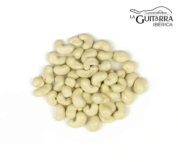 Los anacardos cubiertos de chocolate blanco de marcas garantizan una experiencia gourmet. Estos anacardos son tostados a la perfección y luego bañados en un suave y cremoso chocolate blanco, ofreciendo una explosión de sabor en cada Anacardo.