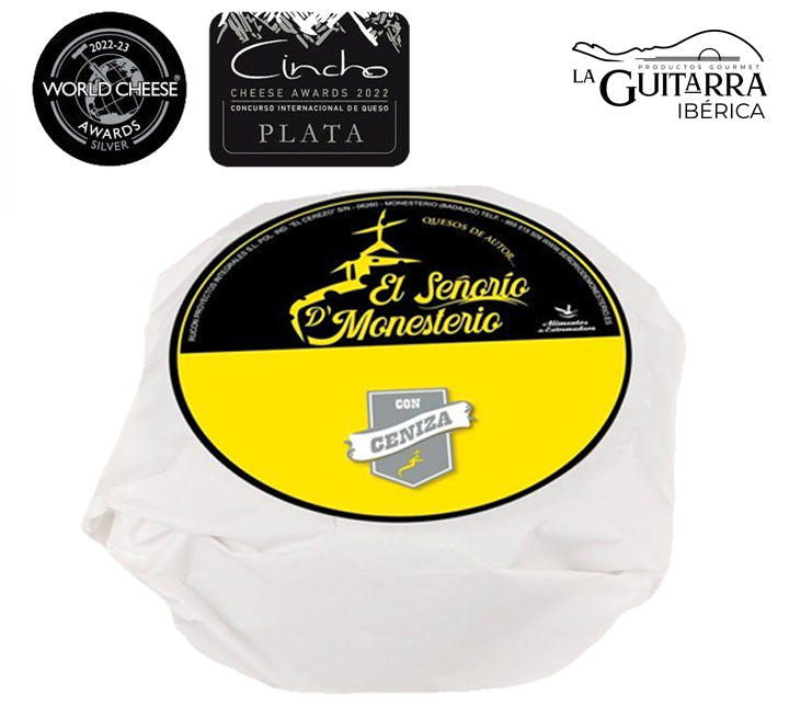 Queso de Cabra con CENIZA de Extremadura con más de 45 días de curación. Este tipo de queso tan genuino por su presencia, está recubierto con carbón vegetal comestible y tiene un contraste suculento en su apariencia por el blanco de su interior y el color negro de su corteza; la ceniza hace que el la corteza del queso madure y éste confiera un sabor más suave.